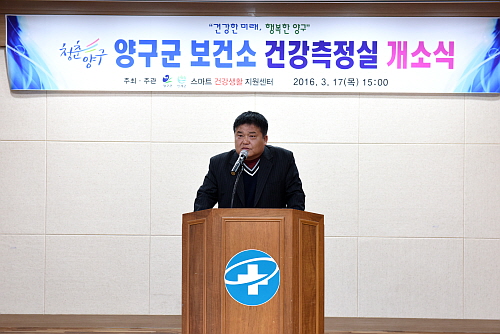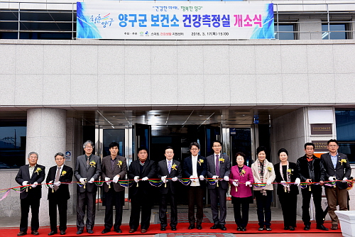 김철 의장과 군 의원들은 3월 17일 보건소 다목적실에서 열린 건강생활인프라 개선사업 건강측정실 개소식에 참석하여 축사와 함께 초청인사 및 관계자들을 격려하고, 테이프커팅, 현판식을 했다.