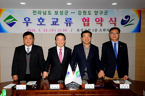 김철 의장과 군 의원들은 3월 23일 보성군청 소회의실에서 개최된 양구군·보성군 우호교류협약식에 참석하여 우호교류 협약을 체결했다.