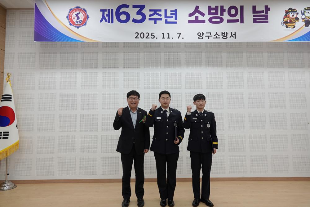 양구군의회 정창수 의장, 신철우 부의장, 조돈준 의원, 김정미 의원, 김선묵 의원, 김기철 의원, 이상철 의원이 11월 7일에 열린 제63주년 소방의 날 기념행사에 참석했다.