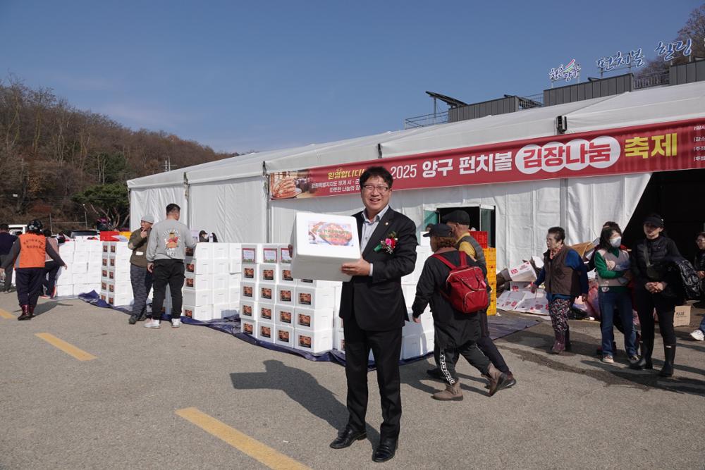 양구군의회 정창수 의장, 신철우 부의장, 조돈준 의원, 김정미 의원, 김선묵 의원, 김기철 의원, 이상철 의원이 11월 7일에 열린 자유총연맹 김장나누기 행사에 참석했다.