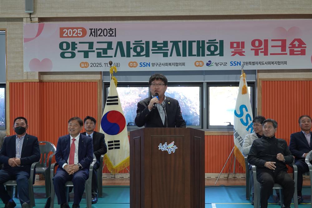 양구군의회 정창수 의장, 신철우 부의장, 조돈준 의원, 김정미 의원, 김선묵 의원, 김기철 의원, 이상철 의원이 11월 7일에 열린 제20회 양구군 사회복지대회에 참석했다.