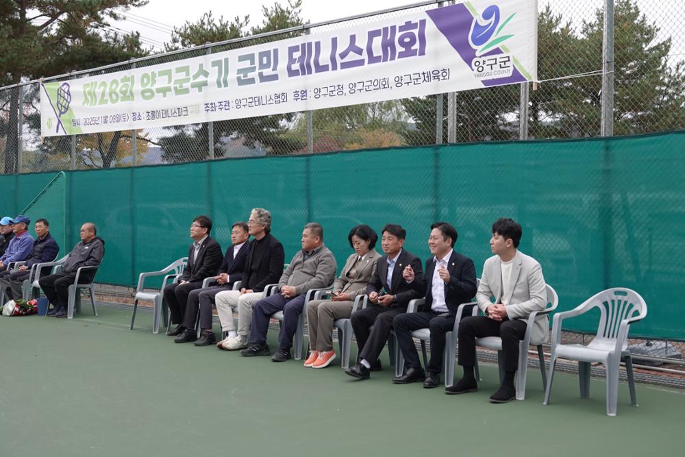 양구군의회 정창수 의장, 신철우 부의장, 조돈준 의원, 김정미 의원, 김선묵 의원, 김기철 의원, 이상철 의원이 8일, 제28회 양구군수기 테니스대회에 참석했다.