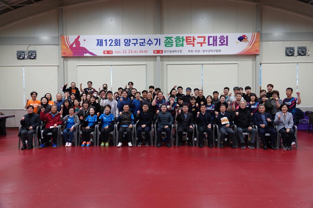 양구군의회 정창수 의장, 신철우 부의장, 조돈준 의원, 김정미 의원이 13일, 제12회 양구군수기 종합탁구대회에 참석했다.