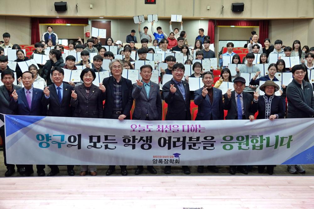 양구군의회 정창수 의장, 신철우 부의장, 김정미, 김선묵 의원이 21일, 양록장학생 장학증서 수여식에 참석했다.