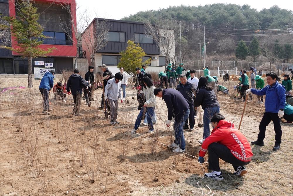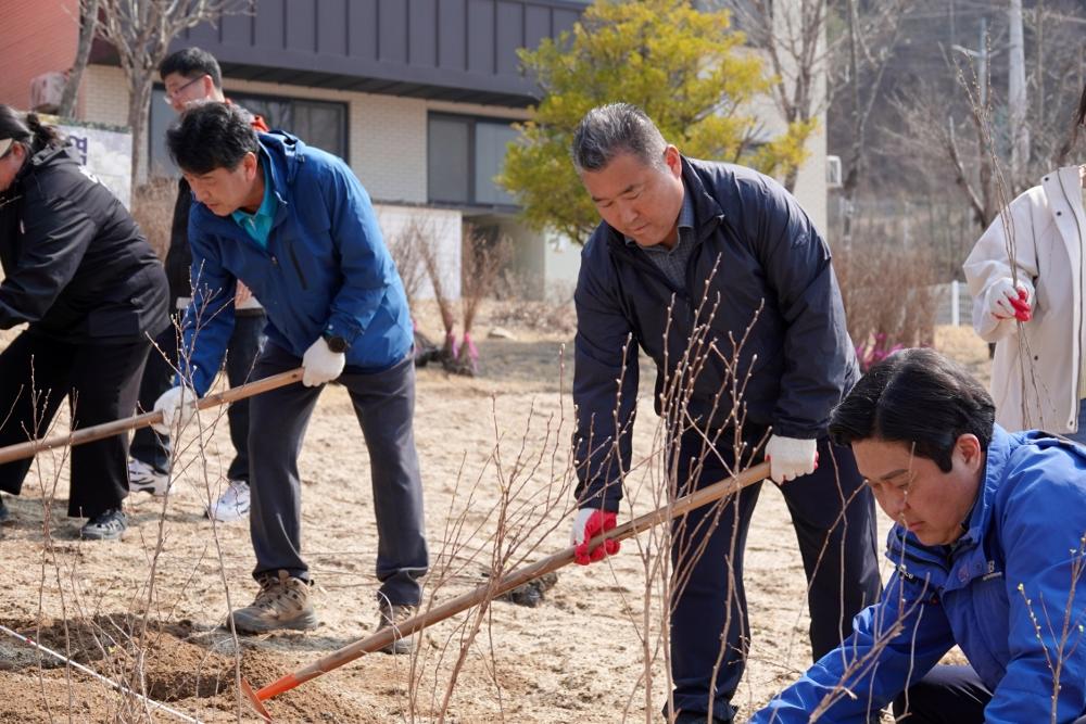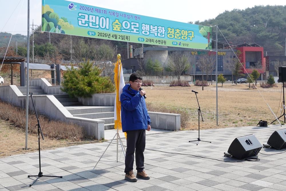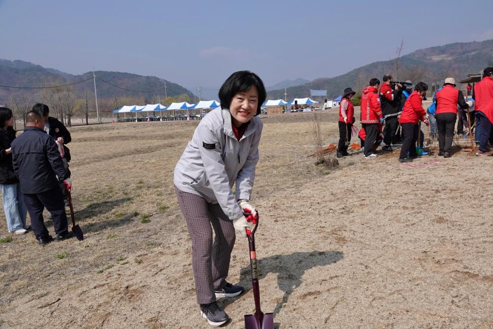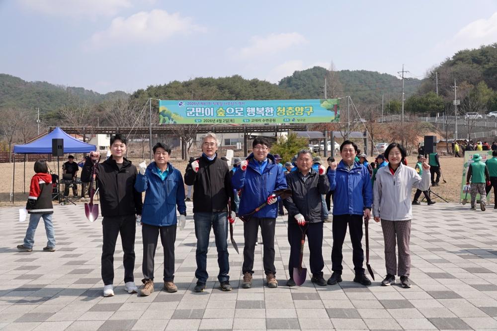 양구군의회 정창수 의장, 신철우 부의장, 조돈준, 김정미, 김선묵, 김기철, 이상철 의원이 2일 고대리 파로호 꽃빛 테마공원에서 열린 제81회 식목일 기념 나무 심기 행사에 참석했다.