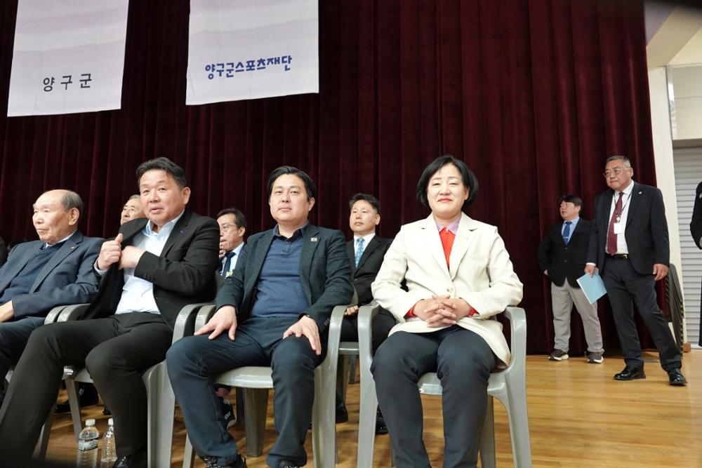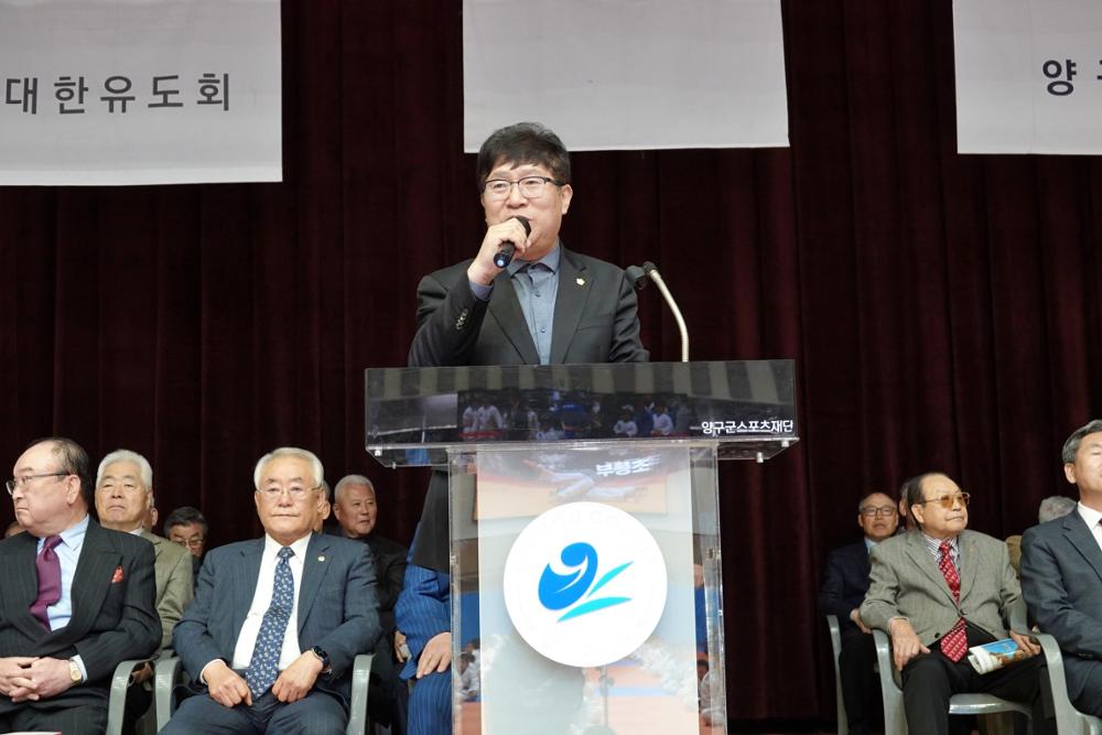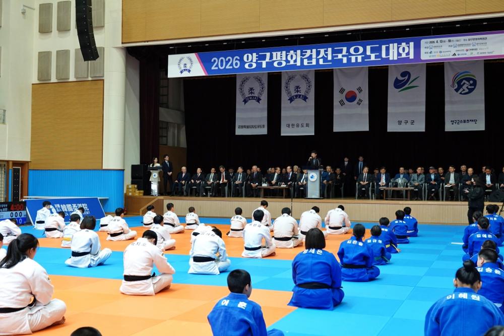 양구군의회 정창수 의장과 김정미, 김기철 의원이 13일 양구문화체육회관에서 열리는 2026 양구평화컵 전국 유도대회에 참여했다.