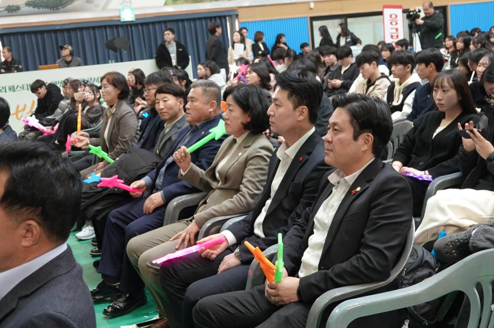 양구군의회 정창수 의장, 신철우 부의장, 조돈준, 김정미, 김기철, 이상철 의원이 28일 양구문화체육회관에서 열린 2025 행복동아리 페스티벌 및 수험생을 위한 콘서트에 참석했다.