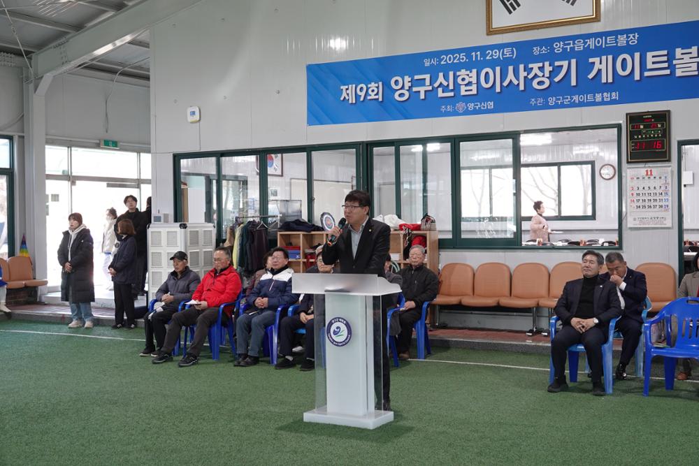 양구군의회 정창수 의장, 신철우 부의장, 조돈준 의원, 김정미 의원, 김선묵 의원, 김기철 의원, 이상철 의원이 11월 29일, 제9회 양구신협이사장기 게이트볼대회에 참석했다.