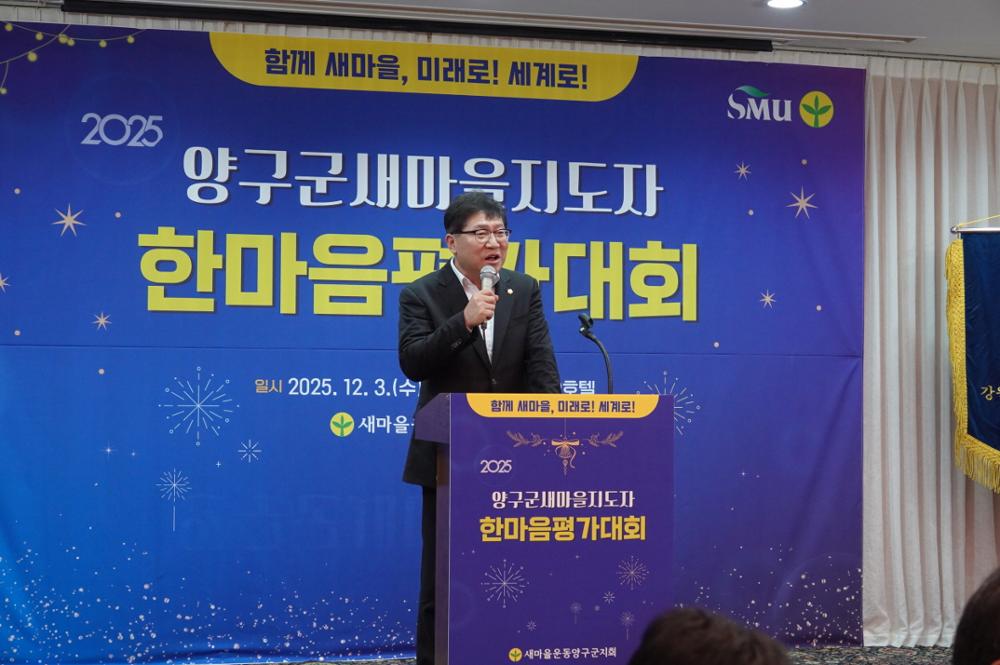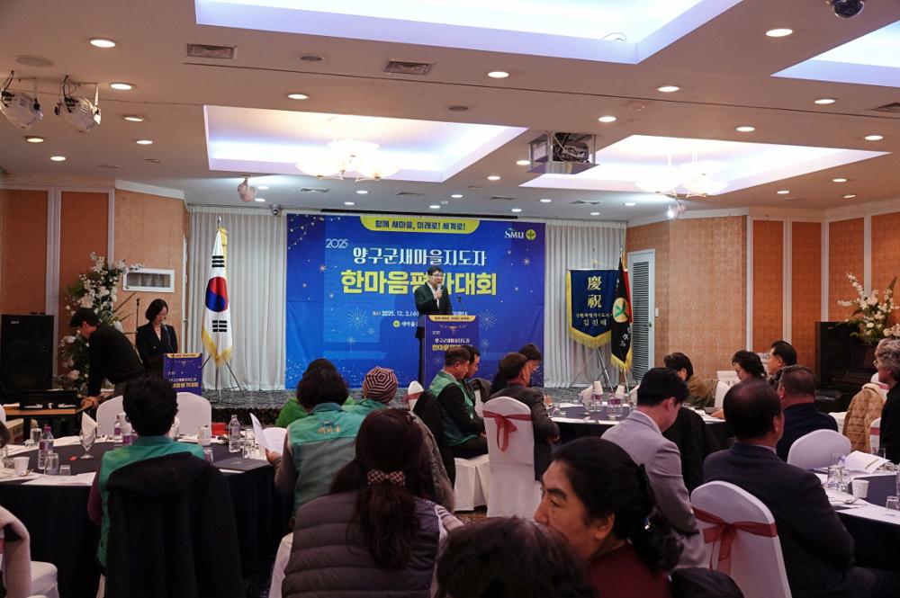 양구군의회 정창수 의장, 신철우 부의장, 조돈준, 김정미, 이상철 의원이 3일 KCP호텔 연회장에서 열린 2025년 양구군새마을지도자 한마음평가대회에 참석했다.