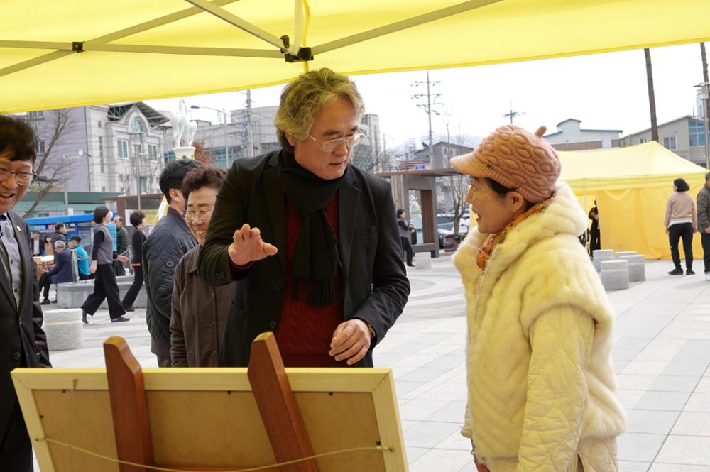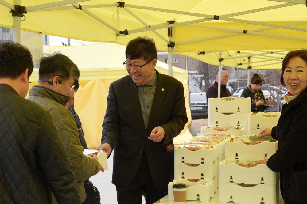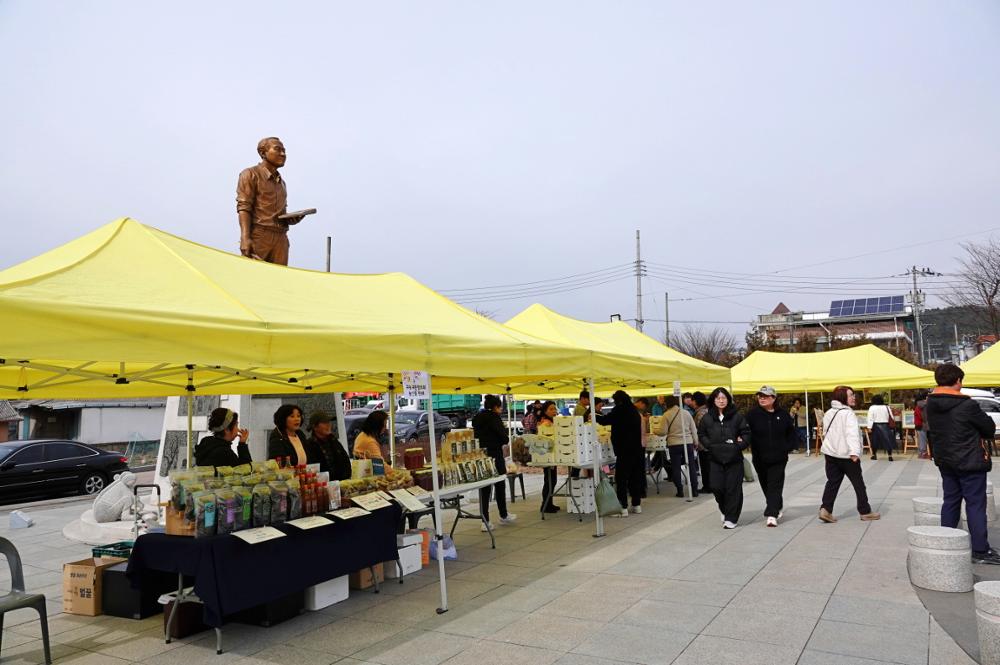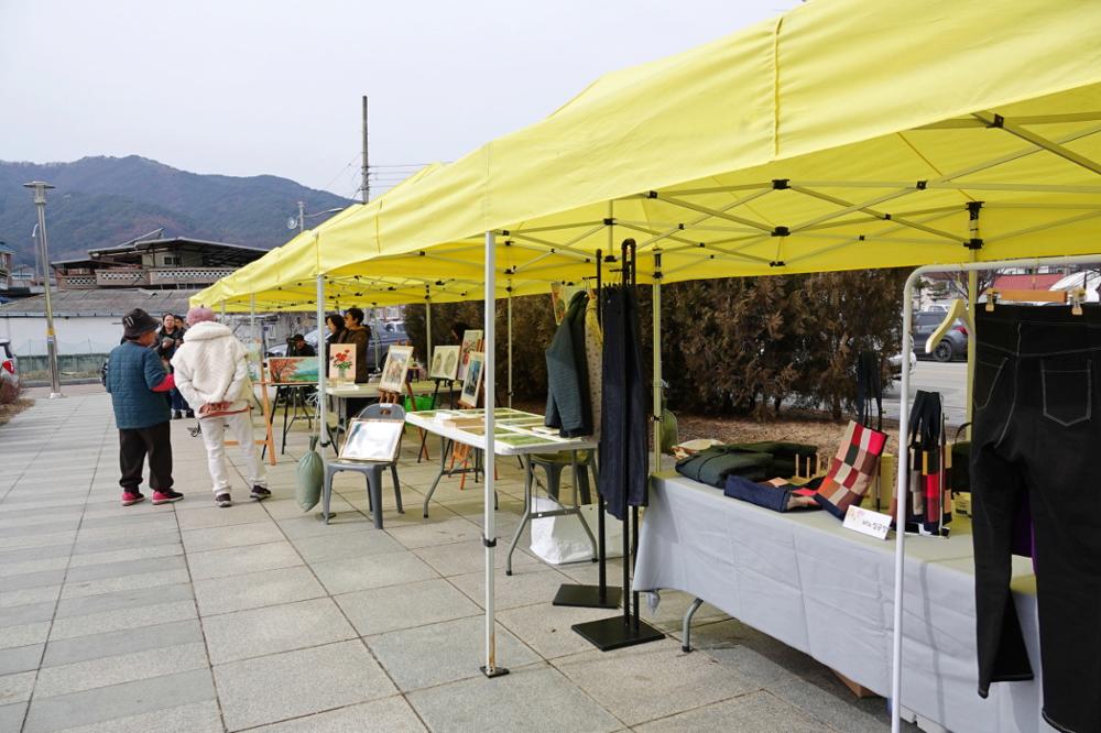 양구군의회 정창수 의장, 신철우 부의장이 5일 박수근광장에서 열린 여성농업인센터 농한기강좌 재능기부 함께 잇는 양구마켓에 참석했다.