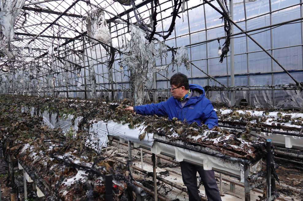 창리 비닐하우스 화재 피해 현장 점검