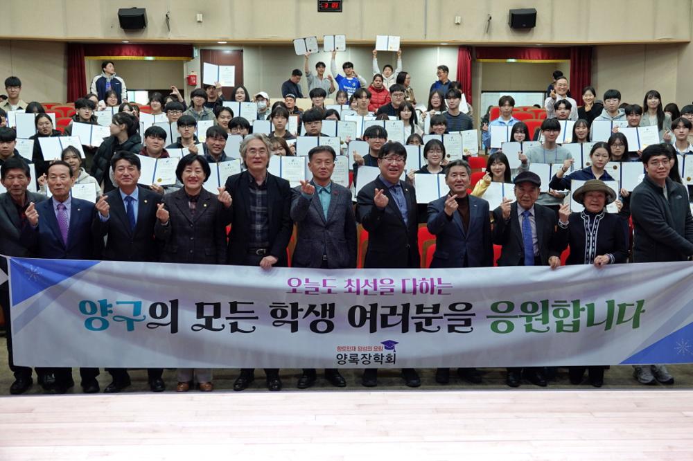 양구군의회 정창수 의장, 신철우 부의장, 김정미, 김선묵 의원이 21일, 양록장학생 장학증서 수여식에 참석했다.
