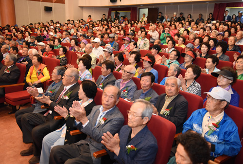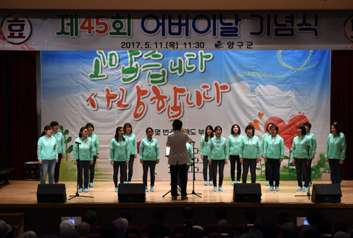 최경지 의장과 군 의원들은 5월 11일 문화복지센터 공영장에서 열린 제45회 어버이날 기념행사에 참석하여 어르신들을 위로하였다.