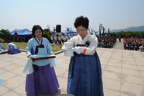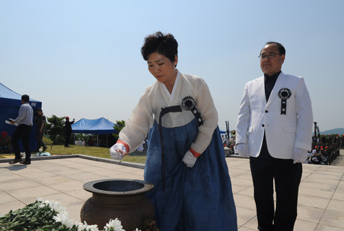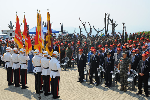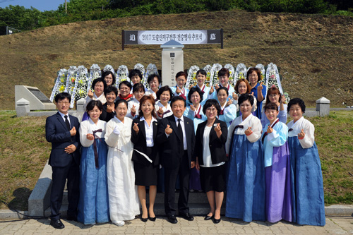 최경지 의장은 6월 17일 도솔산 전투위령비에서 열린 2017 도솔산지구전투 전승행사 추모식에 참석하여 헌화하며 무적해병의 넋을 기렸다.