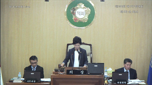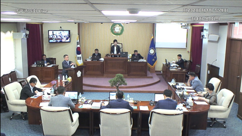 양구군의회(의장 최경지)는 6월 19일 제232회 제1차 정례회 제4차 본회의를 열어 문화체육과, 경제관광과, 도시개발과 소관 2017년도 상반기 군정주요업무 추진실적 및 하반기 업무계획 보고를 받고, 주요시책에 대하여 질의하였다.