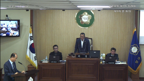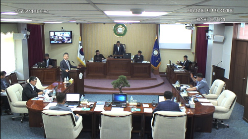 양구군의회(부의장 임철호)는 6월 20일 제232회 제1차 정례회 제5차 본회의를 열어 안전건설과, 클린환경과, 상하수도사업소 소관 2017년도 상반기 군정주요업무 추진실적 및 하반기 업무계획 보고를 받고, 주요시책에 대하여 질의하였다.