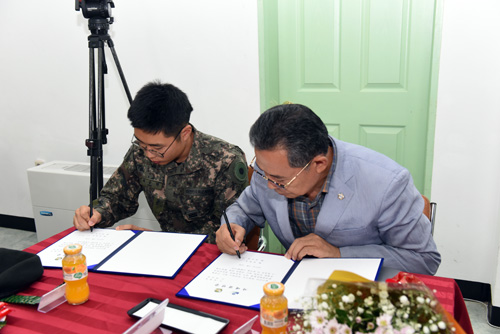 최경지 의장과 임철호 부의장은 9월 22일 문화복지센터 세미나실에서 열린 군민 · 군장병 자매결연 참석하여 군장병을 위로 하고 즐거운 시간을 보냈다.