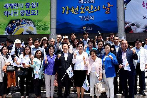 최경지 의장과 군 의원들은 7월 8일 춘천시 문화예술회관에서 열린 제22회 강원도민의 날 경축 기념식에 참석하여 축하 공연를 관람후 기념촬영을 했다.