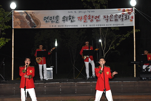 최경지 의장과 김철 의원, 이태균 의원은 9월 30일 방산면 백자박물관 야외무대에서 열린 방산면 가을향연 작은 음악회에 참석했다.