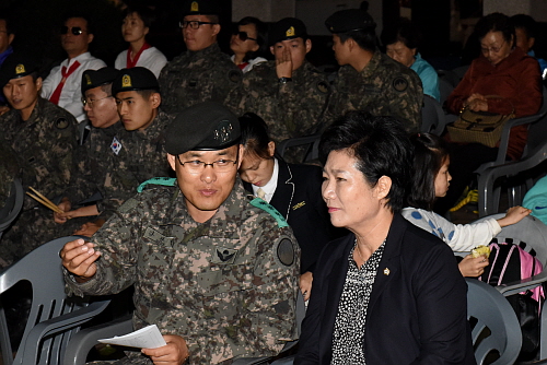 최경지 의장과 김철 의원은 10월 4일 동면 분수공원에서 열린 군장병과 함께하는 작은 음악회에 참석했다.