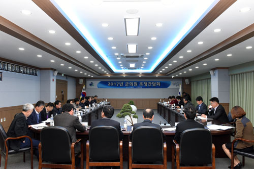 김철 의원은 3월 24일 군청회의실에서 열린 2017년 상반기 집행부 초청 의원간담회에 참석하여 집행부로 부터 군정의 주요현안사항에 대한 설명을 듣고 지역현안에 대한 의견을 나누었다.