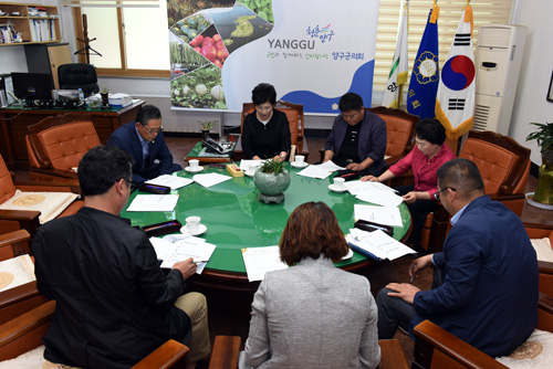 최경지 의장과 군 의원들은 6월 8일 의장실에서 의원 간담회를 열어 당면 현안사항을 협의하였다.