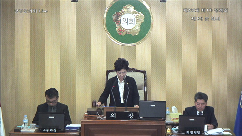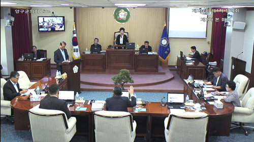 양구군의회(의장 최경지)는 6월 15일 제232회 제1차 정례회 제2차 본회의를 열어 주민생활지원실, 자치행정과, 민원봉사과 소관 2017년도 상반기 군정주요업무 추진실적 및 하반기 업무계획 보고를 받고, 주요시책에 대하여 질의하였다.