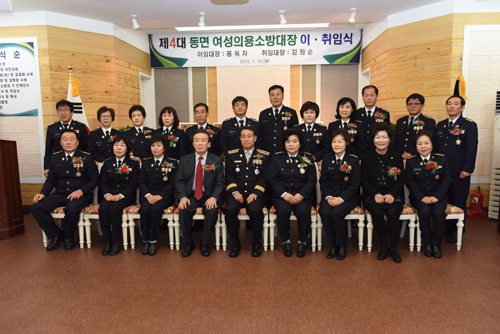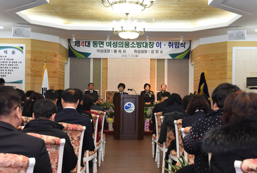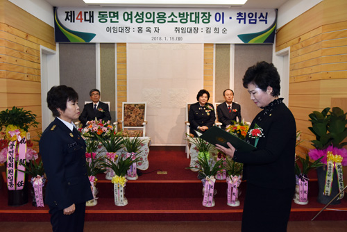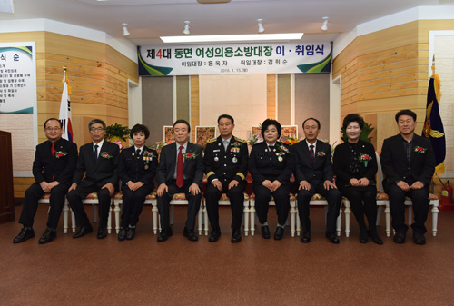 최경지 의장과 군 의원들은 1월 15일 동면 복지회과 2층에서 열린 동면여성의용소방대장 (취임 : 김희순, 이임 : 홍옥자) 이· 취임식에 참석하여 소방대원 및 관계자들을 격려하였다.
