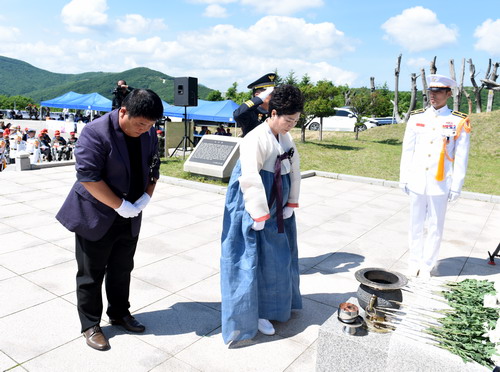 최경지 의장과 김철의원은 6월 16일 도솔산 전투위령비에서 열린 2018 도솔산지구전투 전승기념행사 추모식에 참석하여 헌화하며 무적해병의 넋을 기렸다.