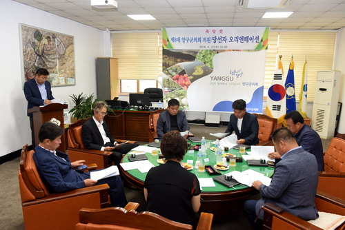 6월27일 오전10시 의장실에서 6.13지방선거에서 당선된 양구군의원 7명과 의회사무과 직원이 참석한 가운데 사무과장 주관으로 제8대 의원당선자 오리엔테이션을 열어 의정운영 주요사항을 안내하고, 원구성 등 현안사항을 협의하였다.