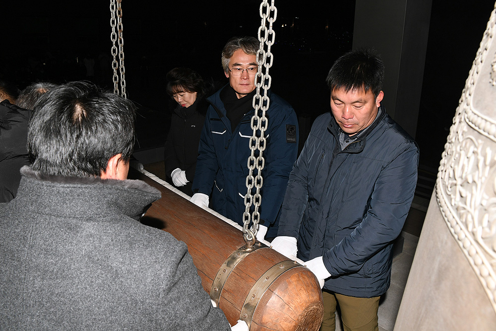 이상건 양구군의회의장과 의원들이 31일 희망의 종각에서 열린 희망의 종 타종식 행사에 참석했다.