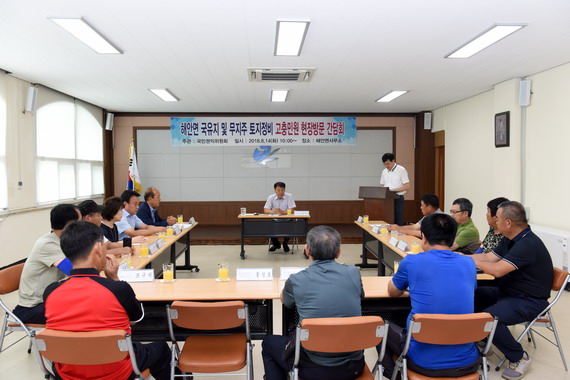 우효림 의원과 임경열의원은 8월 14일 해안면사무소에서 국민권익위원회 주관으로 열린 해안면 국유지 및 무지주 토지정비 고충민원 현장방문 간담회에 참석하였다.