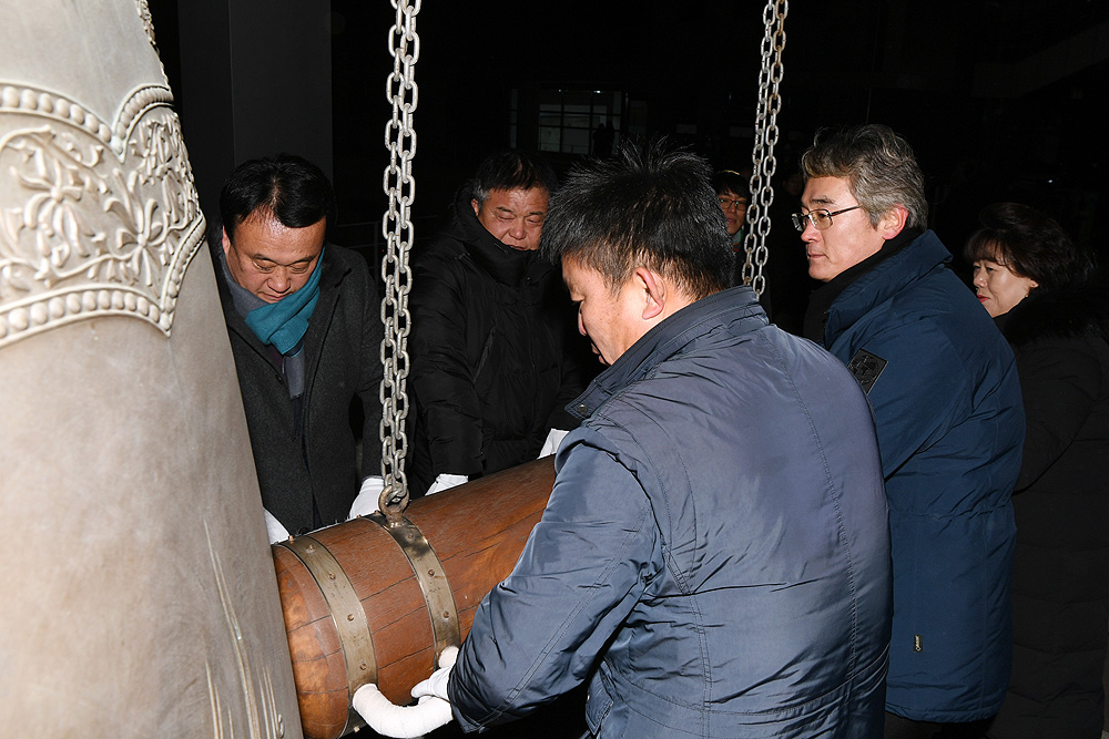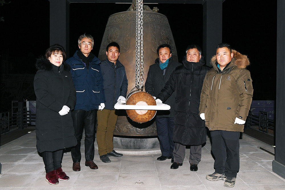 이상건 양구군의회의장과 의원들이 31일 희망의 종각에서 열린 희망의 종 타종식 행사에 참석했다.