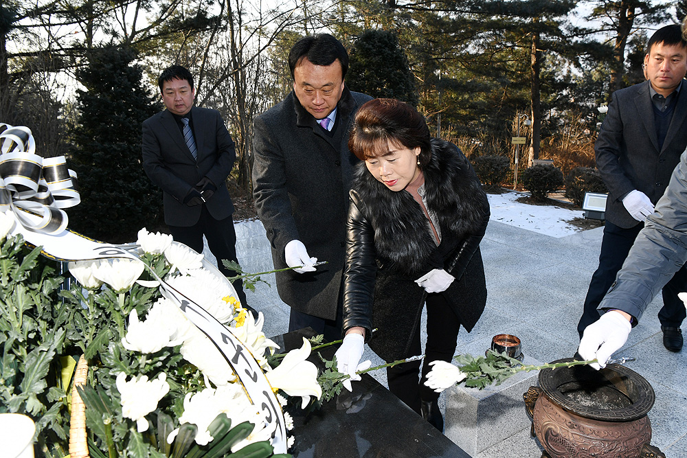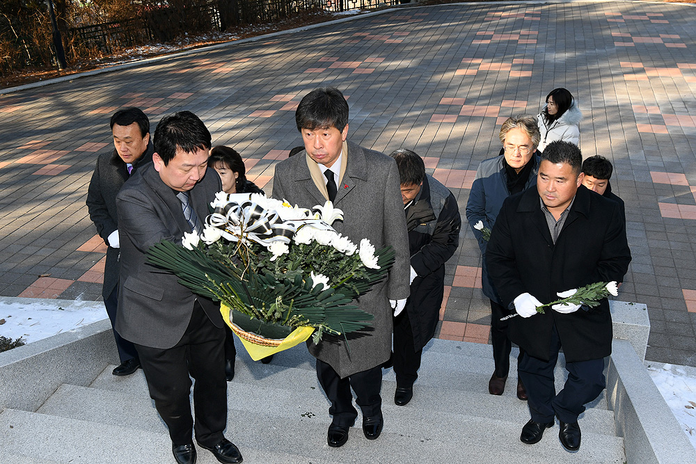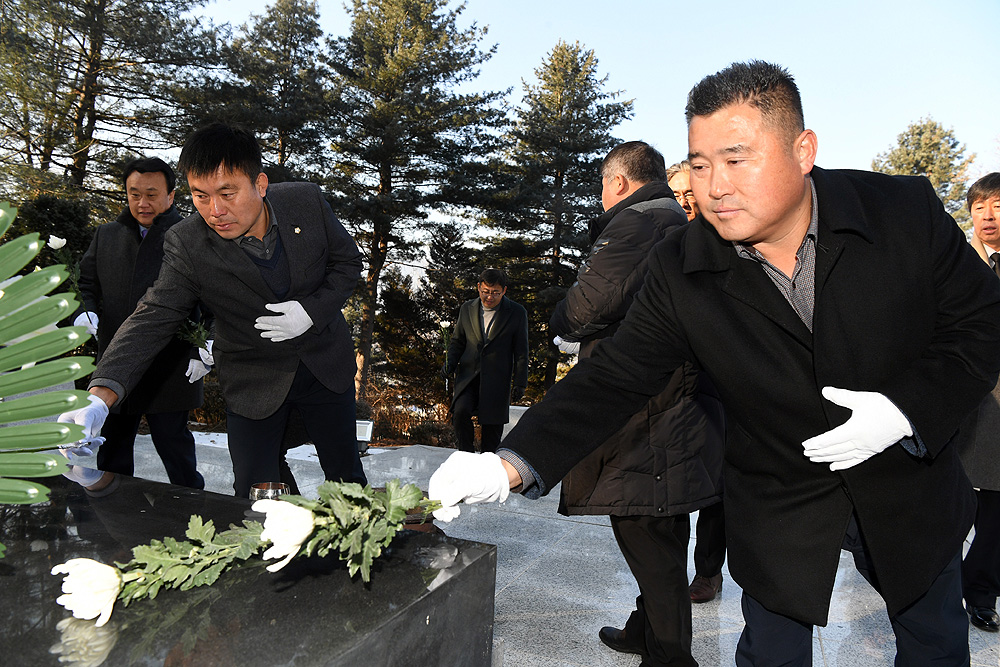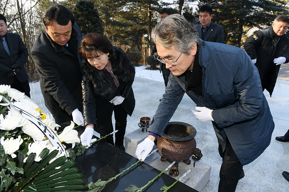 이상건 양구군의회의장, 의원들이 2일 비봉공원에서 열린 충혼탑 참배에 참석했다.