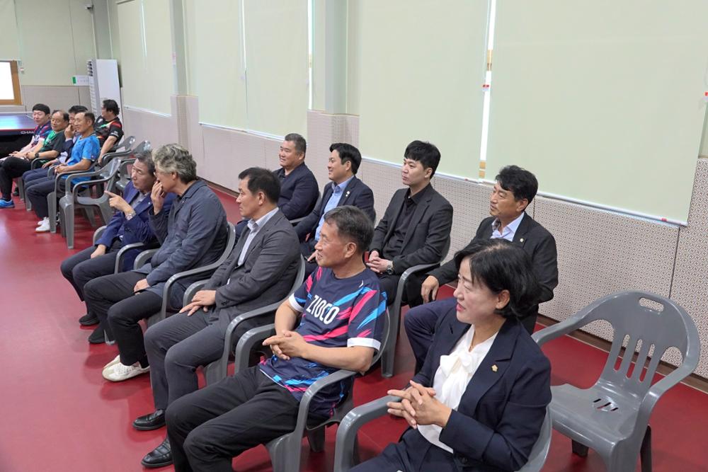양구군의회 신철우 부의장, 조돈준, 김정미, 김선묵, 김기철, 이상철 의원이 20일 청춘탁구장에서 열린 제9회 양구군 협회장배 종합탁구대회에 참석했다.