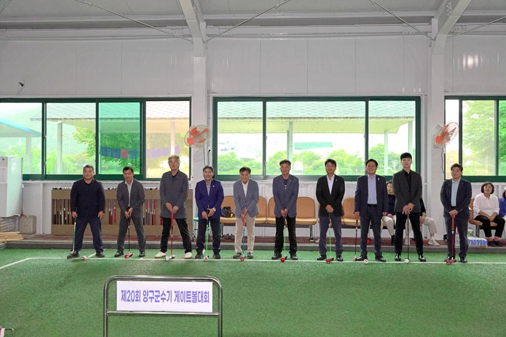 양구군의회 신철우 부의장, 조돈준, 김선묵, 김기철, 이상철 의원이 20일 양구읍 게이트볼장에서 열린 제20회 양구군수기 게이트볼대회에 참석했다.
