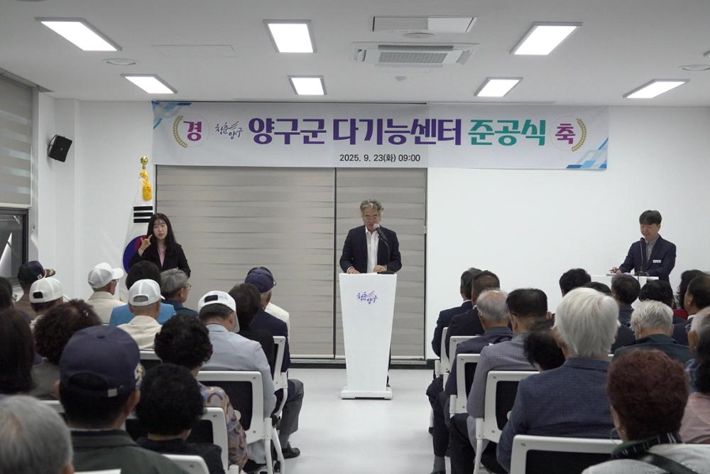 양구군의회 신철우 부의장, 조돈준, 김정미, 김선묵, 김기철 의원이 23일 다기능 통합복지시설에서 열린 다기능 통합복지시설 준공식에 참석했다.