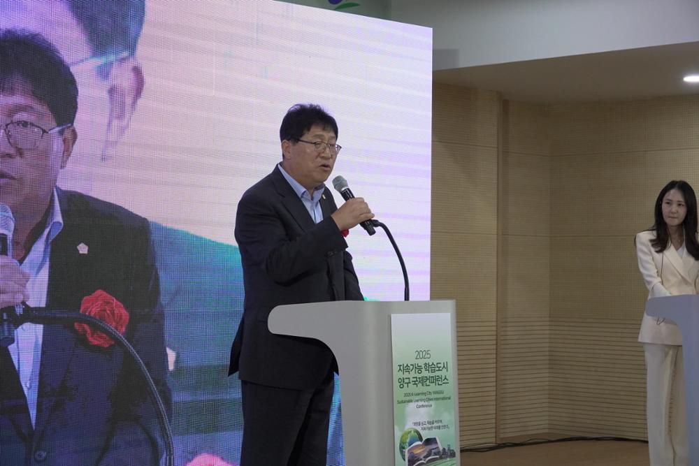 양구군의회 정창수 의장, 김정미, 김기철 의원이 24일 양구군 평생학습관에서 2025 지속가능학습도시 양구 국제컨퍼런스에 참석했다.