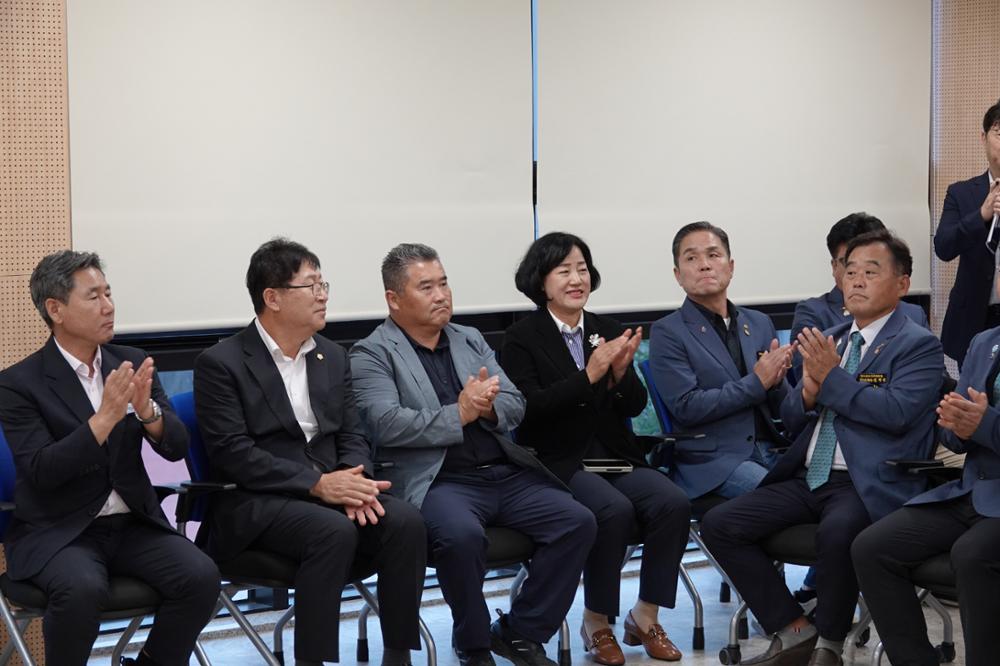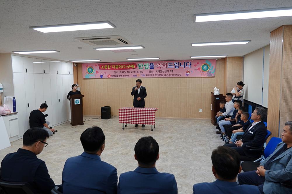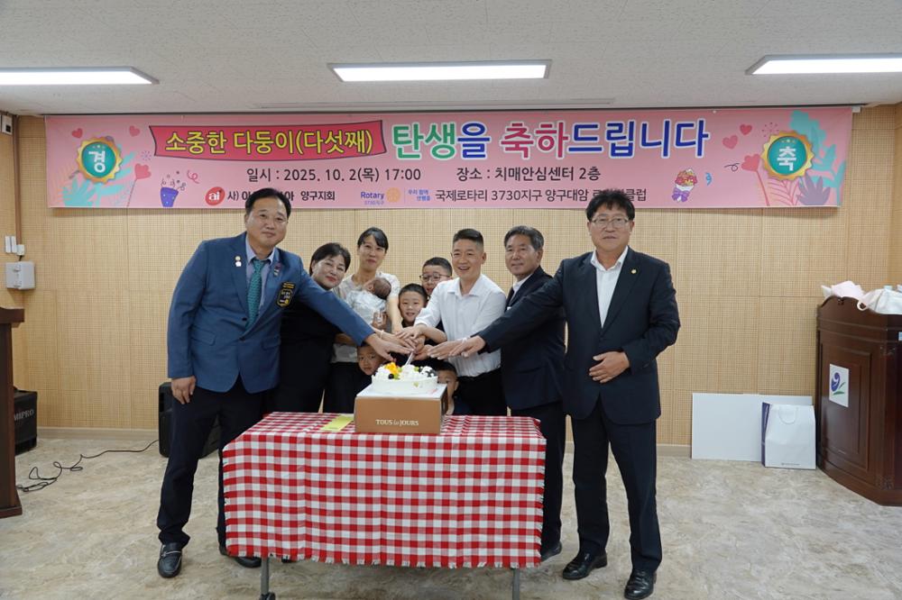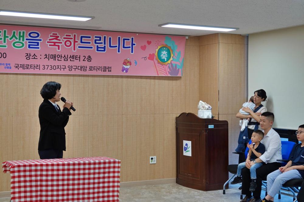 양구군의회 정창수 의장, 조돈준, 김정미 의원이 2일 치매안심센터에서 열린 다둥이 출산 축하행사에 참석했다.