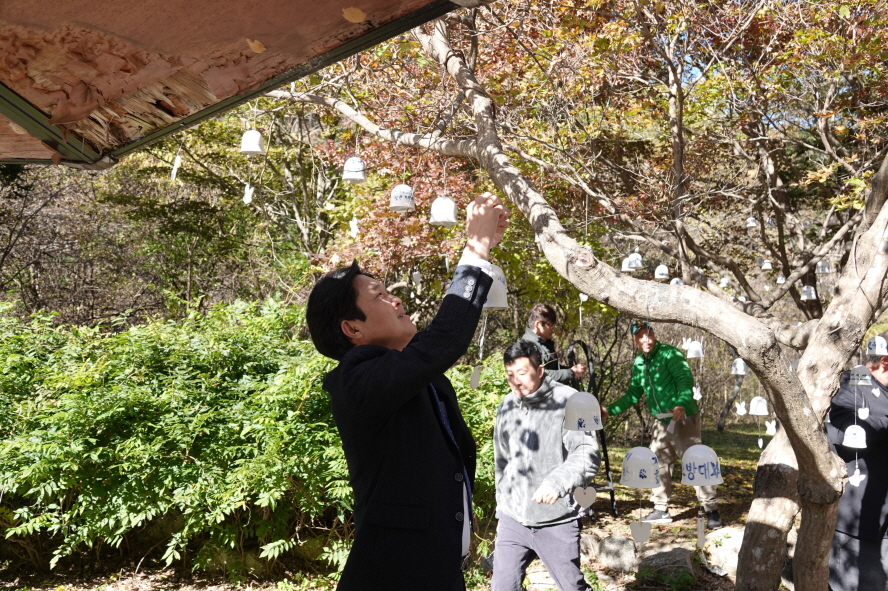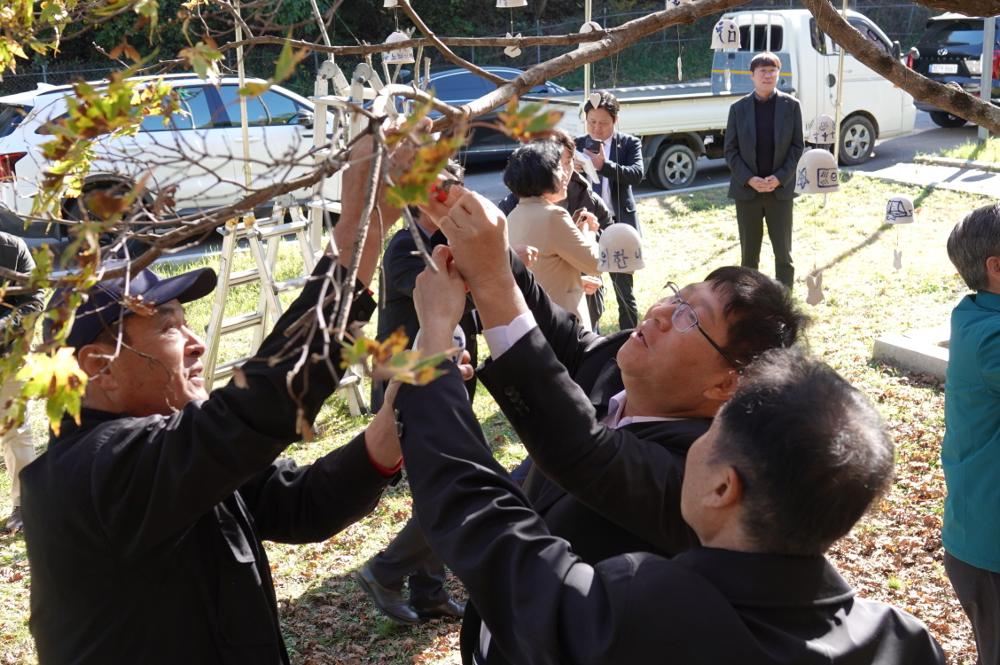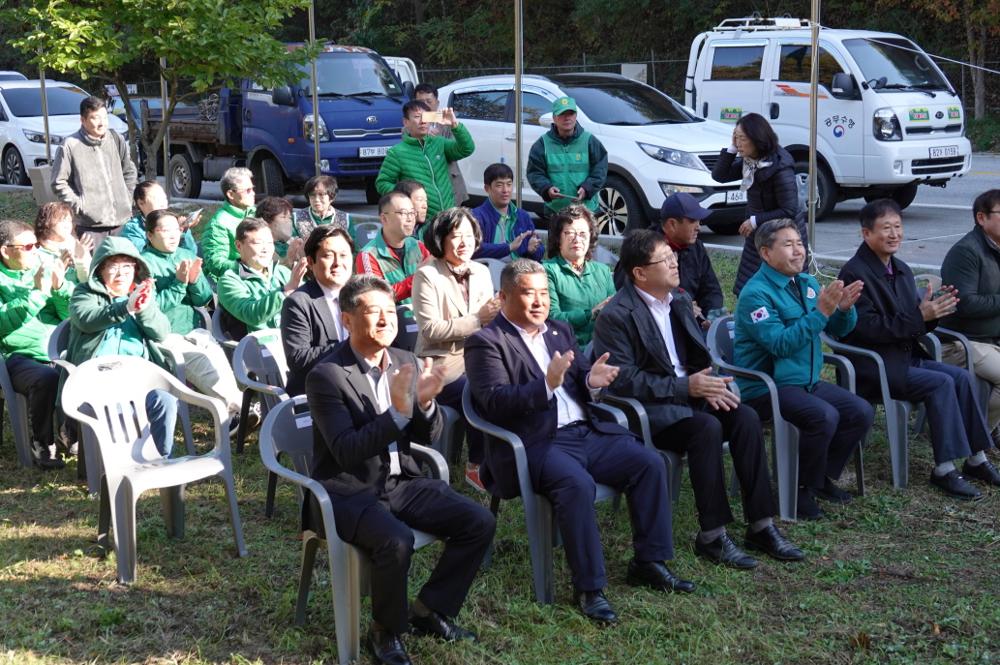 양구군의회 정창수 의장, 조돈준, 김정미, 김선묵, 김기철 의원이 27일 방산면 뱅이골공원에서 열린 좋은마을공동체사업 풍경달기행사에 참석했다.