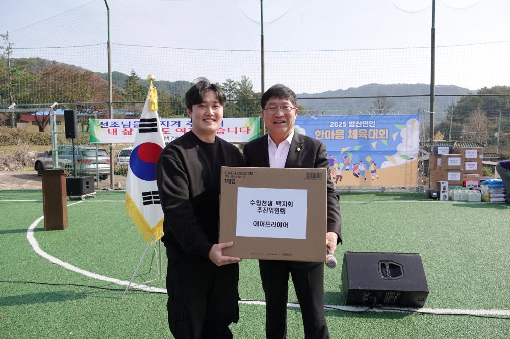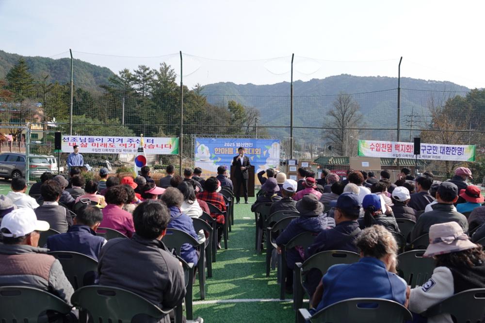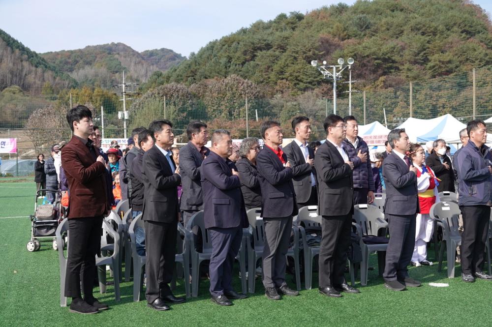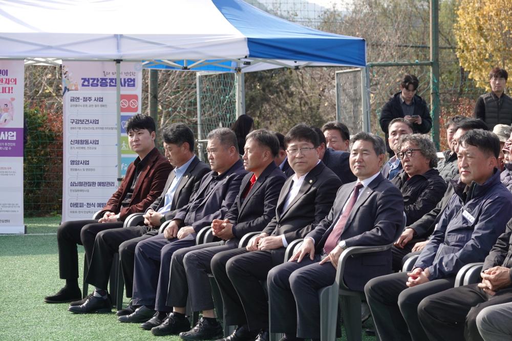 양구군의회 정창수 의장, 조돈준, 김선묵, 김기철, 이상철 의원이 30일 방산체육공원에서 열린 방산 한마음 체육대회 개회식에 참석했다.