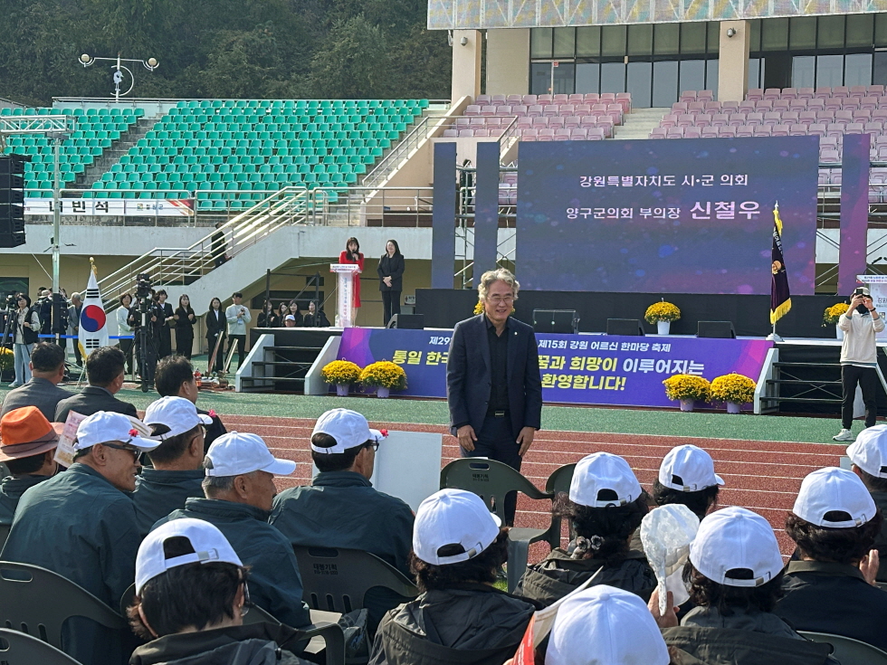 양구군의회 신철우 부의장이 30일 철원운동장에서 열린 제29회 노인의 날 기념식 및 제5회 강원 어르신 한마당 축제 개회식에 참석했다.