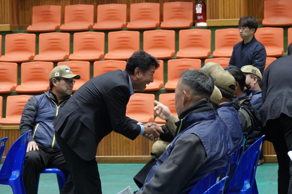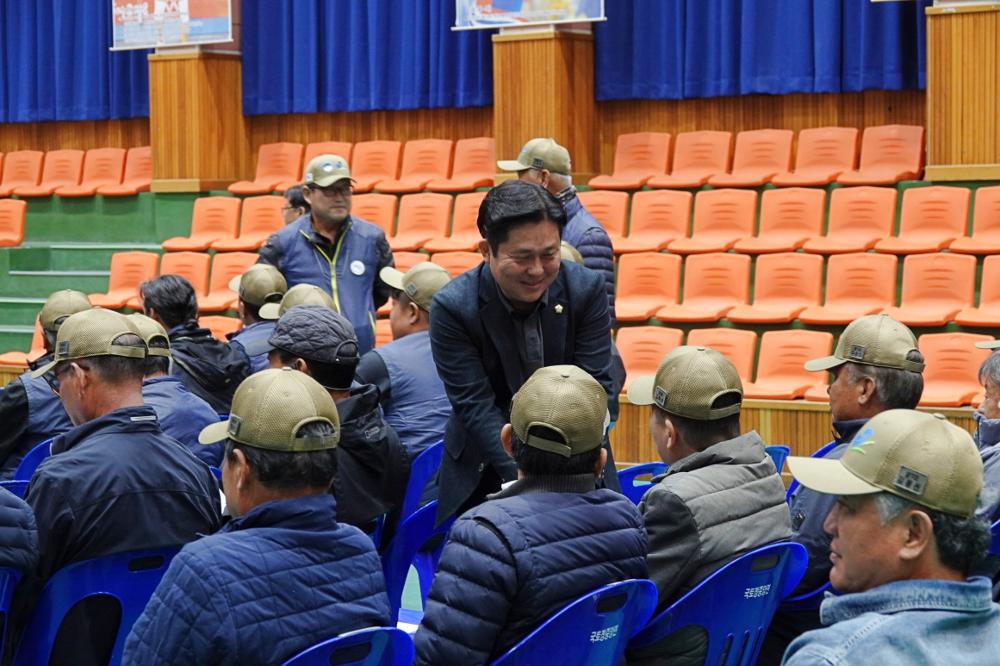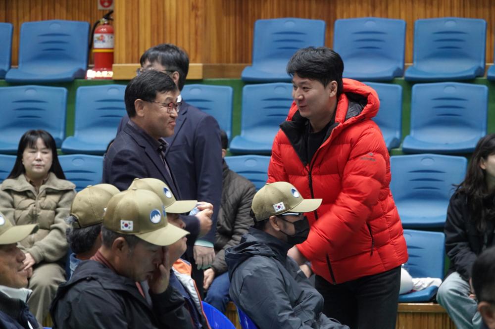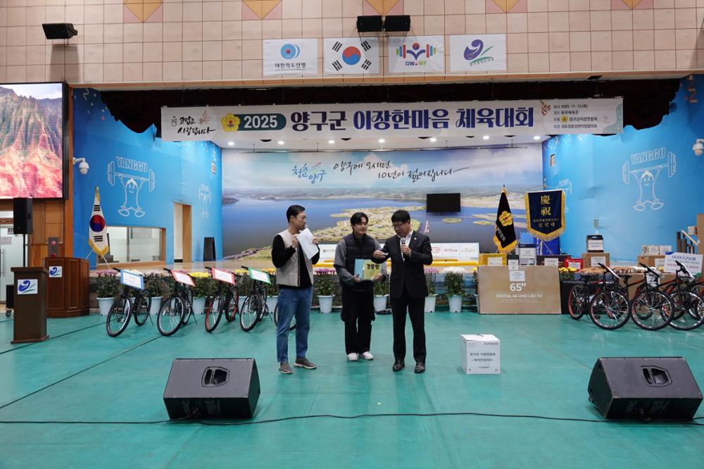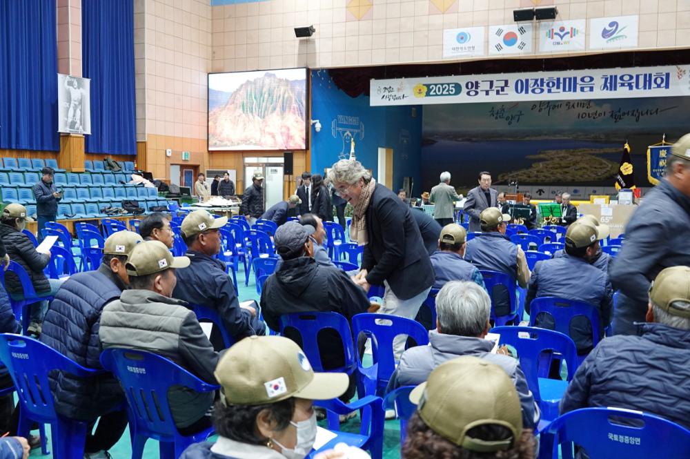 양구군의회 정창수 의장, 신철우 부의장, 조돈준, 김정미, 김선묵, 김기철, 이상철 의원이 13일 용하체육관에서 열린 2025년 양구군 이장한마음 체육대회에 참석했다.
