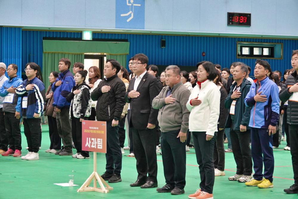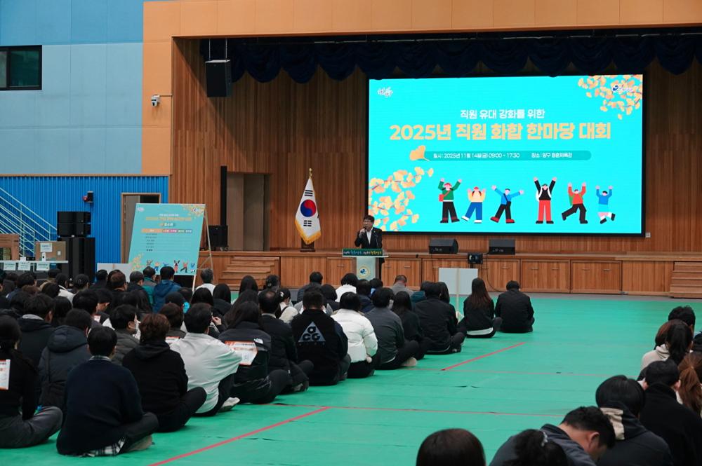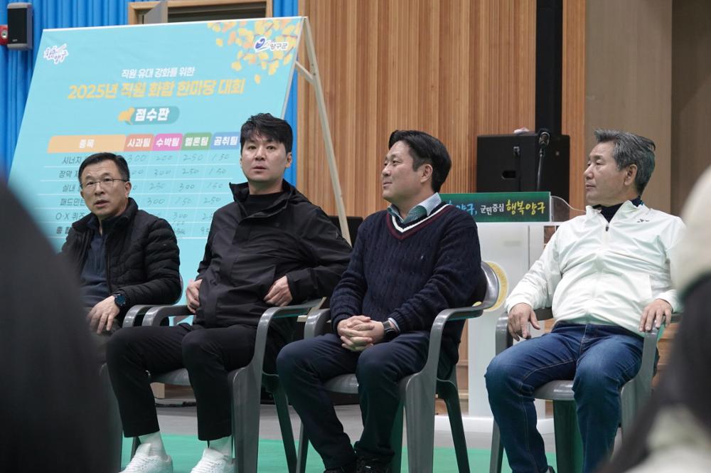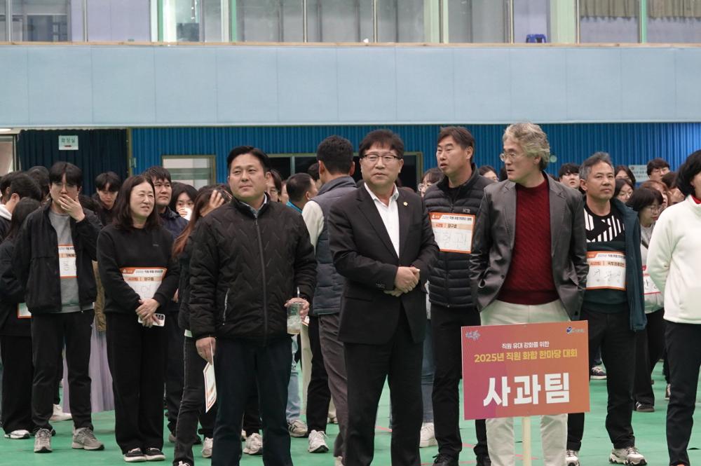 양구군의회 정창수 의장, 신철우 부의장, 조돈준, 김정미, 김선묵, 김기철, 이상철 의원이 14일 2025 직원 화합 한마당 대회 개회식에 참석했다.