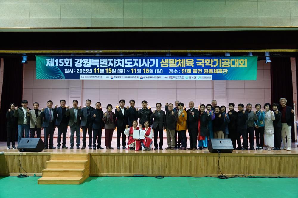 양구군의회 정창수 의장, 신철우 부의장, 조돈준 의원이 15일, 제15회 강원특별자치도지사기 생활체육 국학기공대회에 참석했다.