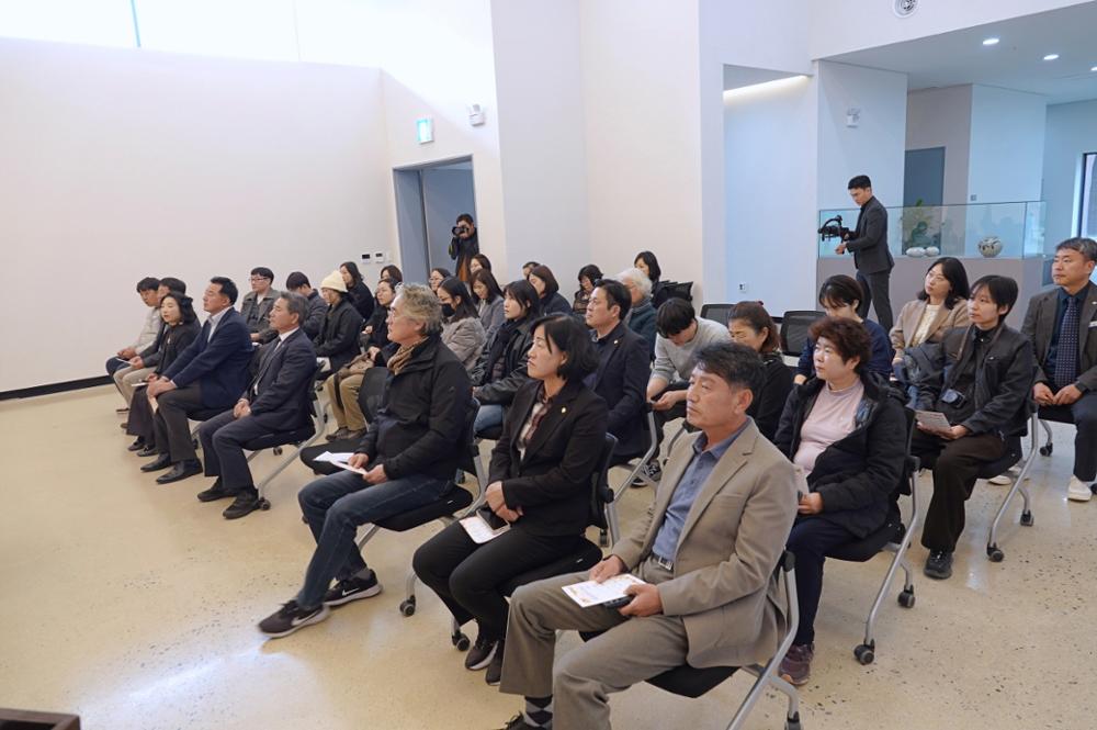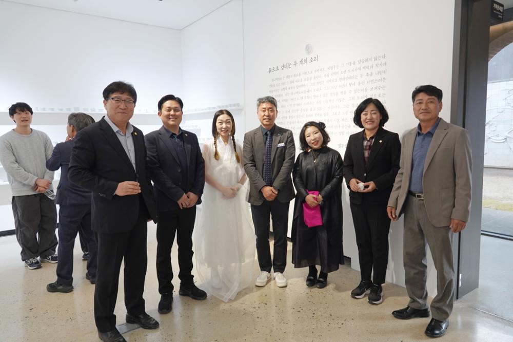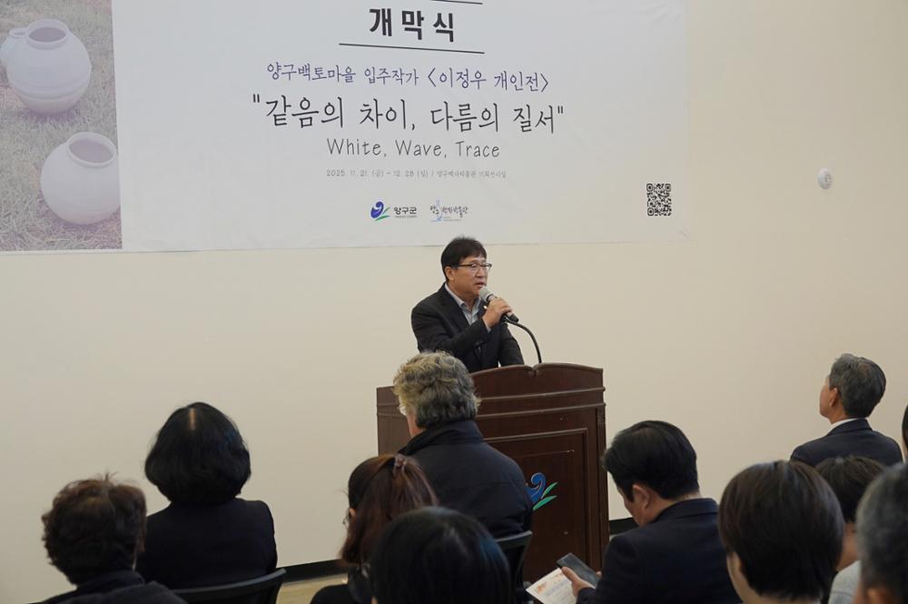 양구군의회 정창수 의장, 신철우 부의장, 김정미, 김선묵, 김기철 의원이 21일 양구백자박물관 세미나실에서 열린 양구백토마을 입주작가 이정우 개인전 개막식에 참석했다.