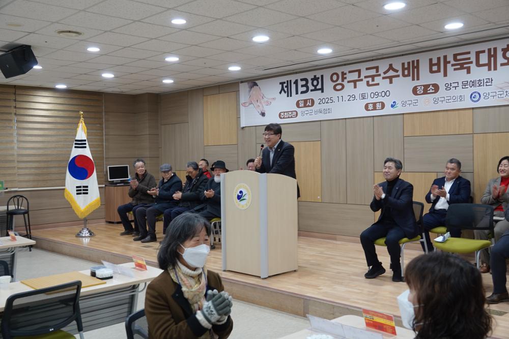 양구군의회 정창수 의장, 신철우 부의장, 조돈준 의원, 김정미 의원, 김선묵 의원, 김기철 의원, 이상철 의원이 11월 29일, 제13회 양구군수배 바둑대회에 참석했다.