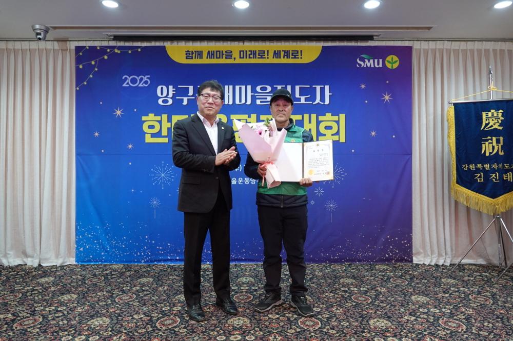 양구군의회 정창수 의장, 신철우 부의장, 조돈준, 김정미, 이상철 의원이 3일 KCP호텔 연회장에서 열린 2025년 양구군새마을지도자 한마음평가대회에 참석했다.