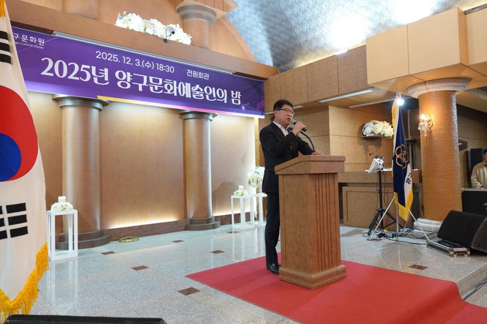 양구군의회 정창수 의장, 신철우 부의장, 조돈준, 김정미, 이상철 의원이 3일 전원회관에서 열린 2025년 문화예술인의밤 행사에 참석했다.