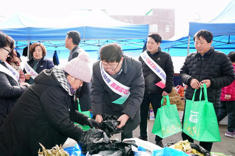 양구군의회 정창수의장, 김선묵, 김기철의원이 25일 양구전통시장을 방문해 설 명절맞이 장보기 행사에 동참했다.